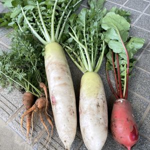 農学での収穫は 三太郎大根と紅三太郎大根も👌 紅三太郎大根は生食が良いらしい❣️ 今日の昼ごはんは これらを使ってスパゲッティ🍝に😅👌 にんじんは甘くて美味しかった💕 大根の葉っぱも入れちゃった😋 美味しかったなぁ〜☺️ 今日も楽しかった😙👍👍👍