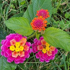ランタナ 〘今日のお花〙 先日、公園散歩中まだまだ 現役で可愛く咲いていました…。