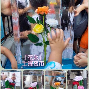 鳥取市夏の風物詩 土曜夜市が4年ぶりに 開催され… 名物「花氷」がお目見え… 氷柱の中に鮮やかな花を 咲かせていました…💮