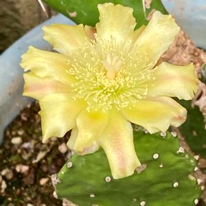 おはようございます😊 今日のお花 💠ウチワサボテン💠 知人から頂いたもの🌵 大きくなるのでちょっと苦手かなぁ🥲 可愛い花が咲くからいいけど😆 過去picです📱
