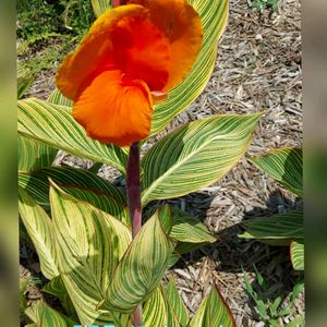 斑入りカンナ 炎天下に咲いていました… 鳥取市只今36℃ 暑ぅ〜👒 近くの公園で…♡