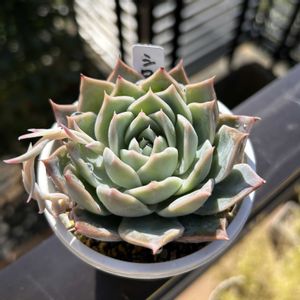 2023.9.30 N'S Style Gardenにて購入 •アエオニウム Chanel •エケベリア ギルバのバラ ベンバディス シロニカ マーガレットレッピン •セダム?エケベリア? Alice Evans “春萌” 綴化 先日、多肉達をカゴに入れて車庫前で日光浴させていたら、それに気付かない旦那が車で轢き潰すという事件がありまして。 不幸中の幸いで重症を負ったのはマーガレットレッピンだけでした。 だけど!! 購入時からの成長具合とか姿形とか私の中でTOP3に入る子だったからだいぶ凹みました😩 半分以上葉はなくなって痛々しいけど、なんとか茎は大丈夫そうだから養生中。 そんなわけで二代目マーガレットレッピンをお迎えしました。 今も可愛いけどまたもっと可愛いくなるといいな〜。