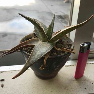 アロエの盆栽も作ってます。 (約5年もの)。 あっ、窓際族なので、窓に色々飾ってるのです😅