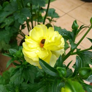 ラナンキュラスラックス ハリオス 雨の中開花しました😊 夏越しした2年目の子です🍀 優しい黄色がかわいい❤️