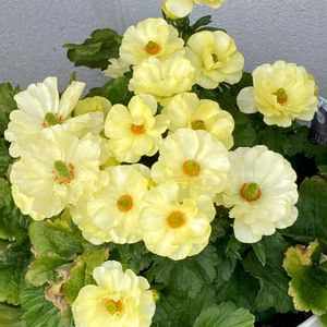 ラナンキュラスラックス ハリオス🍀🌼✨ 満開になりました⤴︎🌼💛 咲き進むと薄いクリーム色になって 更に可愛さアップします⤴︎😆 うちのラックスはどれも ハモグリバエの被害が酷くて 皆さんのは大丈夫かな? どんな対策すると良いですかね?