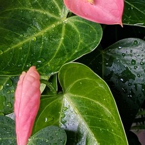可愛い 🩷アンスリウム🩷 が咲き始めました🎵 今年復活したのよー と 鉢ごとプレゼントしてもらいました😍 蕾がいっぱいあって楽しみです🫶💓