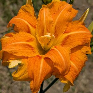 🧡ヤブカンゾウ🧡 オレンジ色の赤っぽい大きい八重咲きの花が咲き始めました ✨💖 酷暑の中 元気出して! と言ってくれてるよう🎵