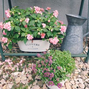 バラ咲きインパチェンス カリフォルニアローズ フィエスタ 1苗がここまで立派になりました✨🥰 もう少し花数が多いと嬉しいんだけど... 液肥を最近サボってたからかな⁉️ 綺麗なんだけど、ぼたぼた花がらが落ちるので お掃除はちょっと大変😂💦