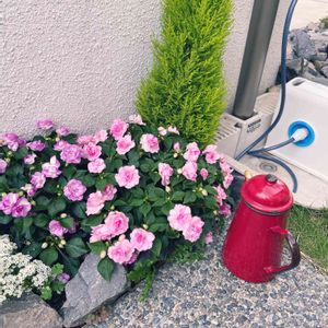 カリフォルニアローズ フィエスタ グランデ 5月連休に苗購入。ハダニが付いて😭苗自体に元気がなくなったけど、何とか持ち堪えて最近可愛いピンクの花を毎日付けてくれるようになりました。 これから暑くなるともっと、花咲いてくれるかな。