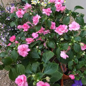実家で狂い咲くインパチェンス😳 1ヶ月半前に1株植えました。バラみたくキレイです🌹 カリフォルニアローズフィエスタ💕