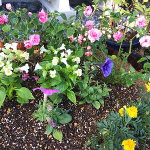 カリフォルニアローズの寄せ植え センスがなくてコンプリート欲のある私は一色に選ぶ事ができずw 全部植えちゃうから、まとまりない寄せ植えになるのです この向こうに白が咲く予定〜