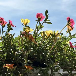 こんにちは✨ 朝から☀️で、まだ雨降ってません 蒸し暑いです💦 1️⃣ニチニチソウ爽夏💫 花数が増えてきて☺️花が開きかけてるのが星の形で可愛い🥰 2️⃣ポーチュラカ✨カラフル元気いっぱい😁