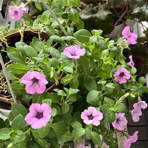 こんにちは✨ 今日は曇り空です☁️ 1️⃣サントリーサフィニアラベンダーレース🩷徒長しながらの成長😅 今年の猛暑を☀️乗り切ってくれたから😌 咲いてくれて嬉しいです☺️ 2️⃣は6月の様子👀花の大きさも色も違います💦