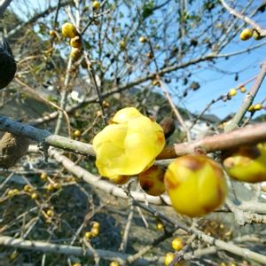 ロウバイ 今日のお花 ご近所さんのお花です 仰ぎ見るような 大木ですが 開花ばなは数個しかなく これからが 楽しみデス🟡🟡🟡🟡🟡