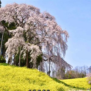 《東北桜巡り🌸のご紹介》 何年にも渡って、大好きな東北の桜を追いかけてきた記録です。桜ツアーの参考になれば😊 滝桜から北に上ると、R459沿いに「合戦場のしだれ桜」があります。立派な一本桜で、菜の花とのコラボが素晴らしい。めちゃ混みということもないので、オススメ。 近くには、二本松城(霞ヶ城)がありますが、桜のある城址公園で、特別なものはありませんね。