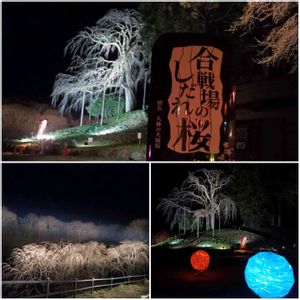 天然記念物の合戦場のしだれ桜 樹齢200年、日本最古のしだれ桜「三春滝ザクラ」の孫桜で 八幡太郎源義家と阿部定任・宗任が戦った古戦場であることが名の由来となっています 3.3mと2.8mの2本木立ての桜が合体して見事な一本桜に見えるから、寄り添うように立つその姿から、別名「夫婦桜」とも呼ばれています。 雨降る前日、武藤園芸さんの里山とここを巡ったのです🏃♀️ 車も満車となるほどの大勢の人出でした。 一番遠い駐車場だったので、急足で向かうと…♪♪♪ 二本松のトランペット演奏者🎺Nobyさんのミニライブが始まったところ♡♡「糸」が聴こえて来ました🎶 ぐるりと一周してる間も〜🎺🎺次の予定があるからと帰ろうとしたら、大月錠一郎になり「カムカムエヴリバディ」を🎺♪♪♪ 余韻に浸りながら帰路へ… 7分咲きだそうです🌸🌸満開ならもっとこんもりするのですが、花散らしの雨が〜なので少し残念です🌸 今年の花見は駆け足で通り過ぎました。我が町二本松の名所巡り一緒に歩いてくださいね🚶♀️🚶♀️