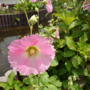 せせらぎ遊歩道に咲く… 色んな色がありますが ここにはピンクだけでした。 ※タチアオイ