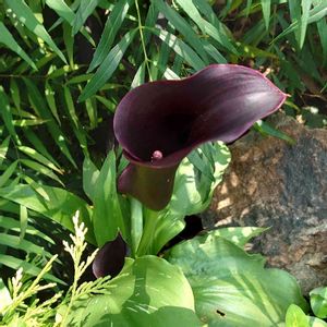 あまり花で見ない色合いが… ※カラー 前出の蓮華さんからの情報でカラーの紫と検索しました。