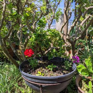 今朝!植えたばかりの、モミジはゼラニウム!紅葉に引かれて、しまいました。🤭😅💐🍁