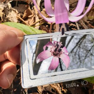 こんばんは(^ー^) 先日、長野市の旭山にカタクリの花を見に出掛けました🚙 ①手鏡で見ると花の中央にコスモスのような模 様がみえます ②カタクリの蕾と葉 葉が迷彩色でカッコいい👍 ③5㎜ぐらいの黄色くて小さな花 ダンコウウメかな? ④新芽 黄緑色の葉が春らしくて綺麗でした 今年もムラサキピンクの色に癒されました💗