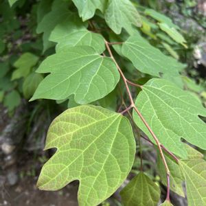 ダンコウバイ(檀香梅) クスノキ科クロモジ属の落葉低木 分布:関東〜九州 ・葉は先割れスプーンのように葉先 が浅く3裂し、裂片の先は尖らず 可愛い葉です💚 枝の基部には裂けない葉もあり、 分裂葉と不分裂葉が混在します。 ・葉柄は赤味を帯びることが多いよ うです。 ④はダンコウバイの春先の花です。 アブラチャンの花に似ていますが ダンコウバイには花柄がなく、花 のかたまりが枝に直接くっついて 咲きます。 似たアブラチャンの花には花柄が あり、枝と花の間に短い柄がつい ているから花が枝から少し離れて 咲いているように見えますよ🤗 新緑の葉💚も可愛いですが、秋の 鮮やかな黄色い葉💛も良いですね 📷 2025/6/9 高尾山