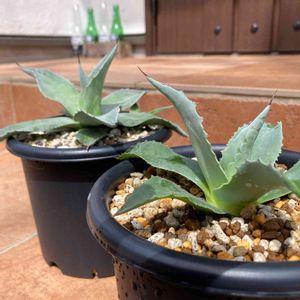 アガベ好きの皆さんに問題です 手前と奥、どちらがバンジーとフロスティブルーでしょうか? 自分の株だけど正直俺は区別つきません🤣
