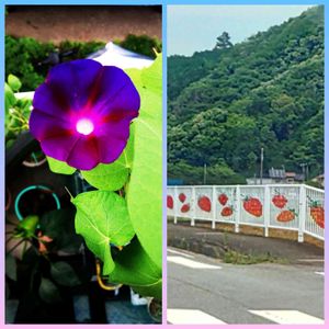 朝顔 実際は、もう少し薄い色です😉 見えにくけど、いちご模様だよ🍓