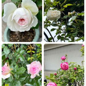 咲き始めたバラ達🌹💕 左上→バロンジロードゥラン 左下→メアリーローズ 右上→モスローズ 右下→バフビューティ 今日明日☔️なので残念です😥