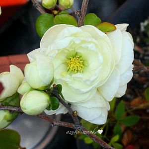 白ボケ(学名: Chaenomeles speciosa 英名: Japanese quince 和名:白木瓜(シロボケ))の花🌺🌿🌸 ボケ(木瓜)は、早春から春にかけて梅のような花を咲かせる落葉低木で、盆栽として人気の高い植物です。 ボケ(木瓜)は、一般に早春から咲き始める品種が多いなか、11月頃から咲き始める寒木瓜や四季咲きの品種もあり、四季を通じて楽しむことができます。 白木瓜は、とっても迫力のある白い花を咲かせるボケです。 白木瓜は、風格のある花姿が魅力的で盆栽などで親しまれている素敵な花です。 🌺🌿🌸