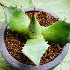 5月24日大きい雷神と共に 水耕栽培にチェンジした小雷神🌱 やっと根が出たので こちらも土植えに替えて 腰水栽培にチェンジしました(´‘▽‘`)✨ アガベって意外と強いですねー💕 でも冬の水遣りには要注意ってことを 今回学びました(´ー`*)ウンウン