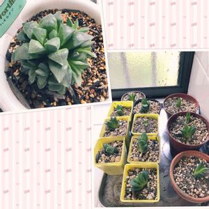 ハオルチアの寿♪(●´艸`)ムフフ なんかいっぱい子がいる( -᷄ ω -᷅ ) 去年、お義母さんに何個かあげたのに 増えてる(´・ω・`) 株分けしようかしら(´・ω・`) みなさん、どのぐらい子がついたらしてますか?(><)