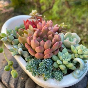 最近買った靴型プランターに 違う寄せ植えを解体して作り直し たよ 寄せ植えし直していたら長かったウェルデルマニーがポッキリ折れた🤣 まぁ、それはそれでいいか〜 クリスマス用に使えそう🥰