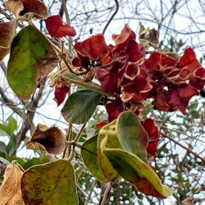 🌿タンキリマメの実🌿 (マメ科 タンキリマメ属) タンキリマメがあちこちに生えてることを知りました👀 いつも 垣根に絡み付いている感じだったけれど 落葉した木に絡み付いて ここにいるよ~✌️と高いところから私を見下ろしていました🌳 高いところ 撮りにくかったけれど…。投稿したね😅 タンキリマメってずっと観察しているけれど。丈夫だね✌️😊あやかりたいものだ✌️ このタンキリマメは 黒い豆が落ちているけれど まだまだ引っ付いてるのもたくさんあります😄 家に持ち帰ったタンキリマメも カリカリになって鞘も赤いまま 豆も付いたまま 振るとカサカサ🎶って可愛い音がするよ💕 可愛らしいこと😊 リースにしても小さいから目立たないかな❓ トキリマメ会えないな😊 10/8 11/9にも投稿したよ🎵 2/1