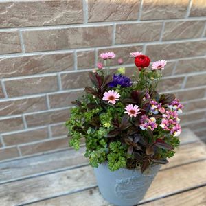 今日もご来店ありがとうございました🙇♂️ アネモネ・凛々花、ラナンキュラスの寄せ植えです ローダンセマムは寄せ植えに使いやすいのでオススメです😊 個人的にも好きな花一つですね👌