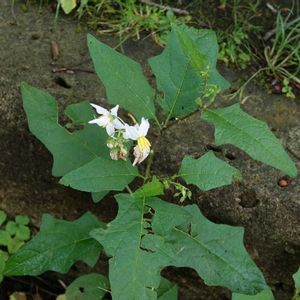 ワルナスビ(悪茄子) ナス科ナス属帰化種 北米原産 道端でほぼ1年中、見掛けている気がします。細かい毛(星状毛)が葉や茎に見られる。 茎葉に鋭い棘があり、イヌホウズキとの違いの一つ。 葉裏の主脈にも棘があり(写真は何度試しても拒否られた)全身、棘だらけのイメージがします。 🧐星状毛は肉眼では見えない(顕微鏡レベル)星状の細かな毛と思います。肉眼では細かな毛がたくさんある事だけが確認出来ます🤔