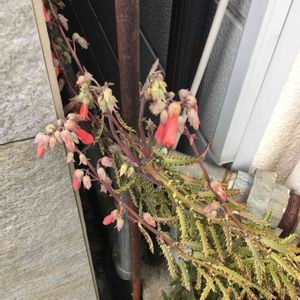 よく、植えられている植物なのですが名前は忘れてしまいました。 ピンク色の花ですががくの色も素敵です。 雑草の緑と良く合っていました。 教えて頂きました。 アベリアのエドワード・ゴーチャーです!