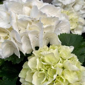 こちらは、 【シュガーホワイト】 オランダ産の西洋アジサイです。 土のpHに左右されない純白な色が とても根強い人気で オランダ産らしく装飾花だけで咲くので ボリュームのある手毬咲きとなってます。 特徴はやはり一重咲きなのに 開ききらずすぼまって咲き 密度が高いので ブーケのような仕上がりに なる事と花弁の縁がギザギザの フリンジになっている事。 咲き始めは画像の下のように 薄い緑からやがて真っ白になり その後 また緑へと変化します。 値段も手頃に落ち着いて来た事も 嬉しい品種です 💐
