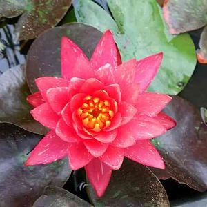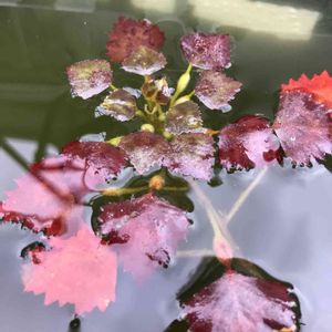 必死なヒシ 北海道は寒いせいかなかなか葉が広がらず、尚且つ紅葉のような現象が起こっとるようでものっそ赤い。 でもよく見ると中心から小さな葉っぱが。冷たい水に晒され、葉が落ちたりしてどうなる事かと思っていたが、こっちゃこれからじゃい(闘志)