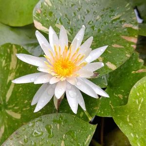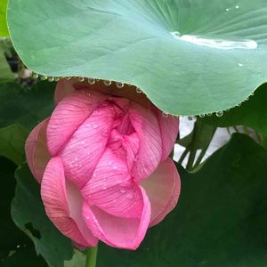 ハス(蓮) 🌸☘🌸 雨の日のハス🌸、葉っぱ☘が傘☔️になってる…😊