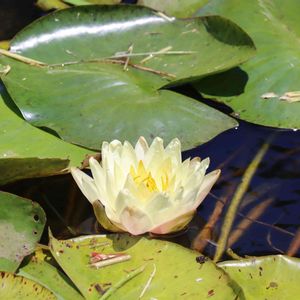 優しいレモンイエローの睡蓮が綺麗です🌻✨ 大輪で見事に咲いています💛 ちっちゃい赤い金魚が気持ち良さそうに泳いでいます🐠 🏷水辺の水曜日 🏷幸せの黄色いお花 🏷黄色いお花大好き協会 🏷ちっちゃいものクラブ