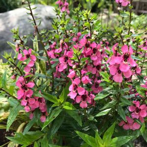 アンゲロニア🌸 開花期が長く、初心者でも育てやすい💕私にぴったりのお花😍 背後には🐘の子のような石が💦