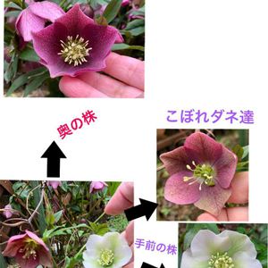 昨夜はまた大きな地震があり、心身ともにお疲れの方々が多くいらっしゃると思います。 一日も早く穏やかな日常が戻りますよう……。 今年は、我が家のクリスマスローズのこぼれダネがあちこちで初めて開花しています🌼 タネはいつもほったらかしにしていて、たくさん落ち、ちっちゃな若芽はたくさんでます🌱🌱🌱それもそのままにしておくと自然と強いものが残り……3〜4年かかりましたか……初めて咲きました🌼 (以前には、鳥が運んで来たクリスマスローズは咲いたこともありました🐦こちらは、もう立派な大きな株になっています✨✨✨) 写真は元の株との違いが面白いなぁと観察しています👀 色はずいぶん違いますが葉っぱや花弁の形はよく似ています😊