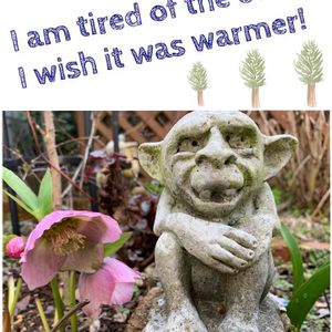 数日前の極寒を思えば暖かいですが……一度、初夏のような日差しを経験してしまったので、もう、少し暖かくなってもまだ足りないです😖 ………と、我が庭のゴブリンがぼやいています😅