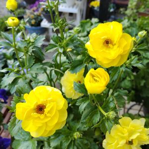 我が家のイエロー達💛 ①ラナンキュラスラックスのピュタロス かなり花が開いてきました。②正月の寄せ植えの中の名も無きジュリアン。日頃寄せ植えはしないので、窮屈そうに見えてしまう (`・ω・´;)