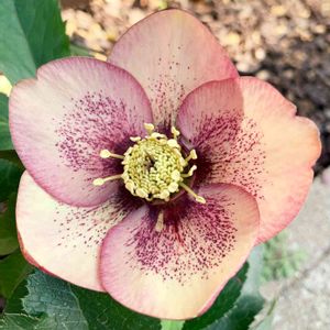 淡いオレンジベースの花弁に繊細なスポットが入る大輪系の美しいクリスマスローズ SSオレンジ、スポット、丸弁、大輪 オリエンタリス系 ガーデンハイブリッド メリクロン アシュードナーセリー作出 『アシュードオレンジペコ』 このコはイギリス生まれの古株さん… この数年の間は苗の出回りを見掛けない どうやら、お迎えした当時に数量限定で作られていたらしい… 今年は、いちばん美しく咲いている時を続く雨で撮影し損ねているので、とても残念なのだが… 花弁が開き、蕊が花火のように開いた状態の時は、特別な美しさが際立ち見惚れる品種のコ🥰