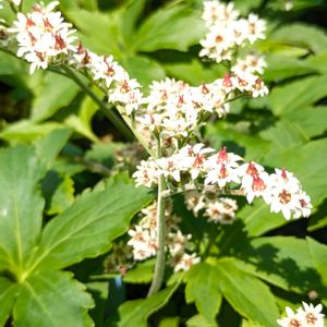 今日のお花 ヤツデ イワヤツデ(岩八手)です。 ユキノシタ科イワヤツデ属多年草 別名タンチョウソウ(丹頂草) 朝鮮半島、中国東北部に自生、春先に岩場に小さな白い花を咲かせます。 葉がヤツデに似ることからイワヤツデの命名。 過去pic 4月の花です。