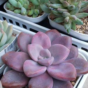 グラプトペタルム属 ムラサキ🌱 グラプトベリア属かと思いきや、Graptopetalum superbum とGraptopetalum sp. の交配でグラプトペタルム属🤭 この子は昨年の秋からの1年経たない新参者。冬越しも順調だし、暑くなってきた今も今のところ好調🎶油断はできませんけどね😅 今日はこういう色の子たちに、オルトランDXをパラパラと☝️普通の色の子より害虫がつきやすいので一足早めに今月から👍 「たっちんのムラサキ」タブをタップでこの子の生長記録のみどりのまとめが簡単に見れます😊🎵