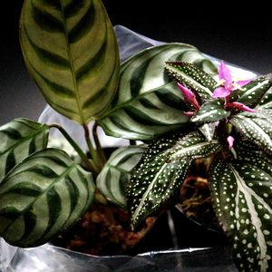今日勢いで買った植物、右はソネリアspとラベルがあるのですが、左の子の名前が分かりません😥 どなたがご存知ないでしょうか?? ↓ 回答をくださった皆さんありがとうございました。皆さんカラテアと答えてくださって検索した所、葉の先端が丸いことからこちらはクテナンテと判断しました。 皆さんのヒントがなければ絶対に辿り着いてない答えでした。ありがとうございました😊!