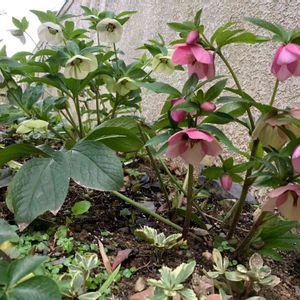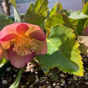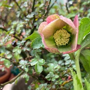 種蒔きから育てたクリスマスローズがまた咲きました。 シングル、とても小さな花です⑭🌸 色も咲き方もシンプル✨これは何色になるのでしょうか? もう少し咲き進むと雰囲気変わるかな? 種蒔きっ子を含めまだ開花がありそうな我が庭です😊💓 バックには植え替えし葉っぱがもりもりしてきたグリーンアイス🌱 今年も開花が待ち遠しいです💓