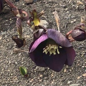 クリスマスローズ2号ちゃん シングルのブラックです🖤⋆͛ このシンプルなブラッククリローちゃん、欲しかったんです! こちらはネットショップで購入しました。 すこし小ぶりです。 開花(多分再来年)が楽しみ〜